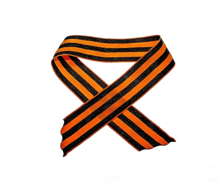 Две черные и три оранжевые полосы ленты несут в себе глубокий, символический смысл. Они олицетворяют собой «дым и пламень» боевых действий, напоминая о суровых испытаниях, выпавших на долю нашего народа. Это также знак воинской доблести и нерушимой славы, которую обрели наши предки в борьбе с врагом.
