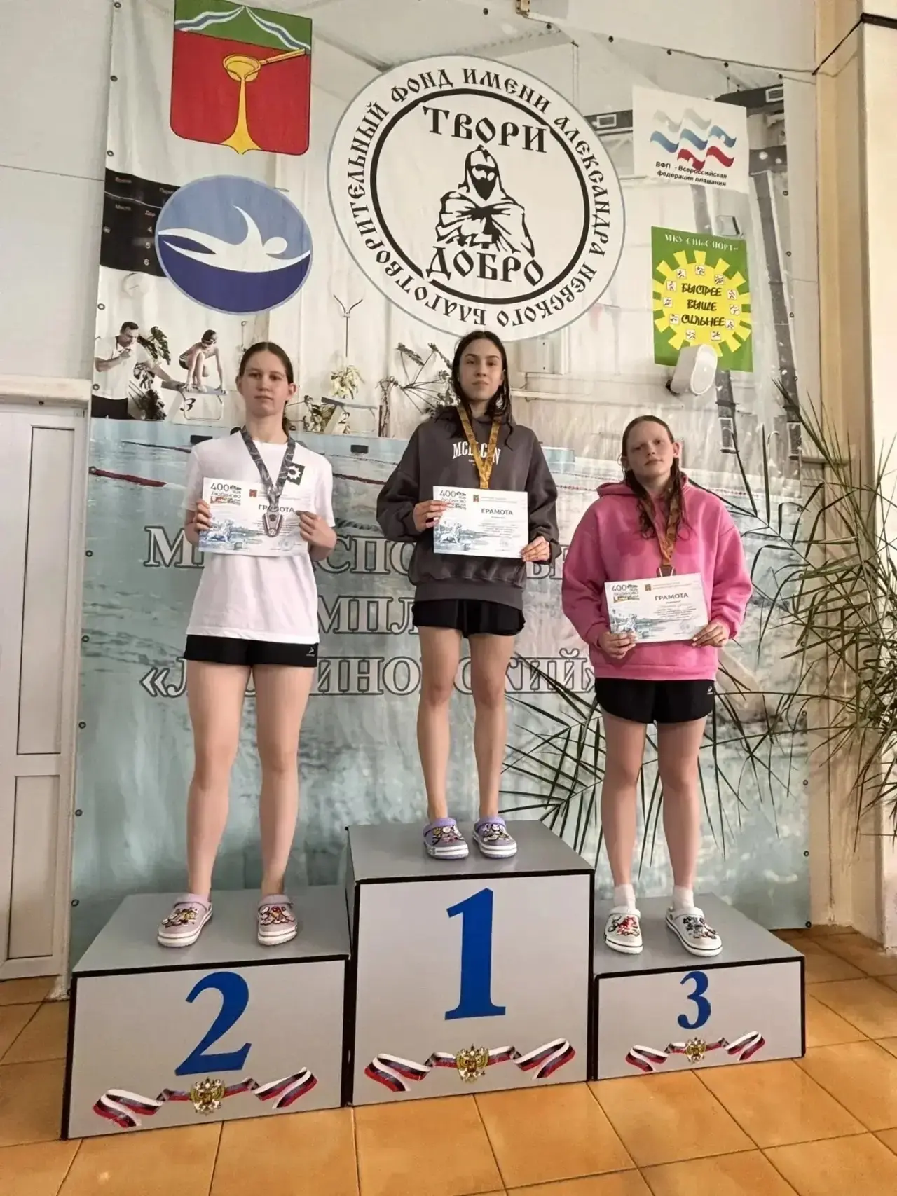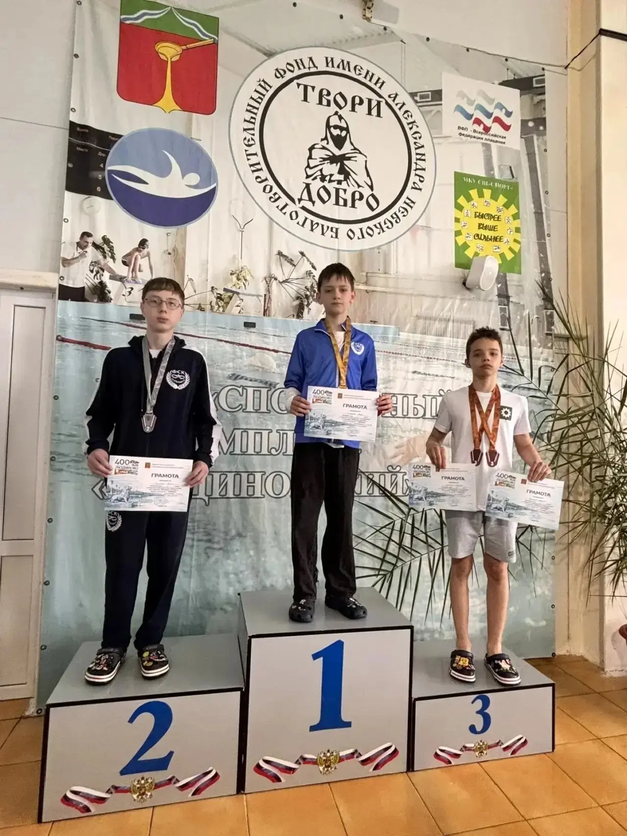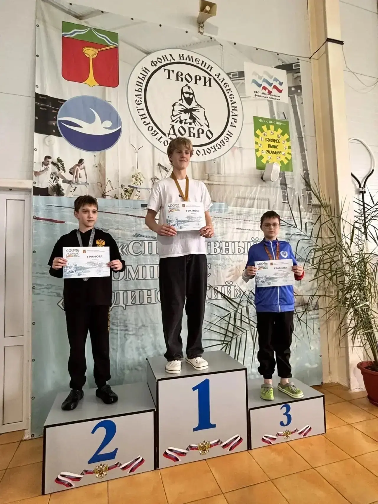 и две медали 1 и 3 места в эстафетном плавании 450 м комбинированная у юношей и девушек.