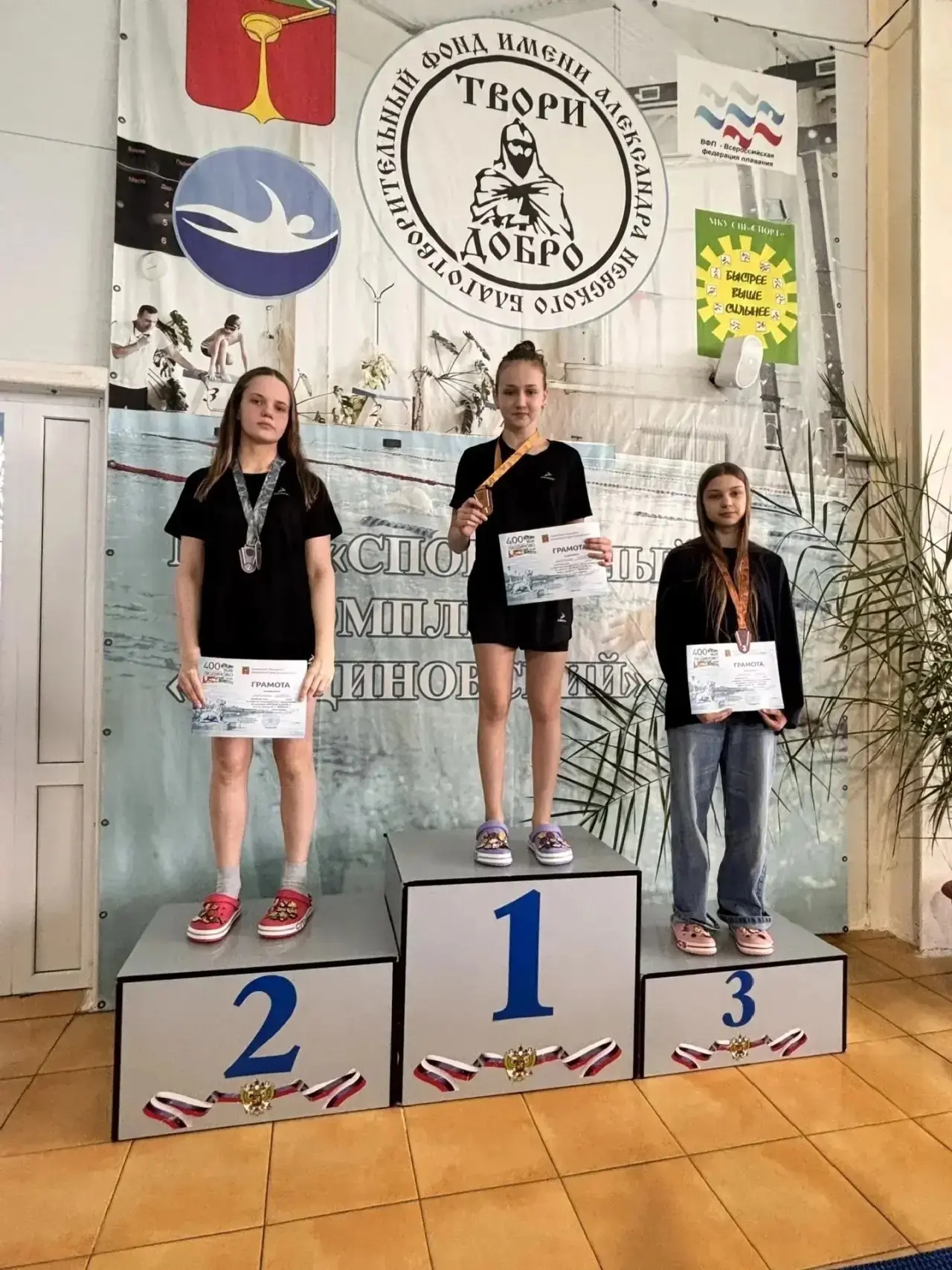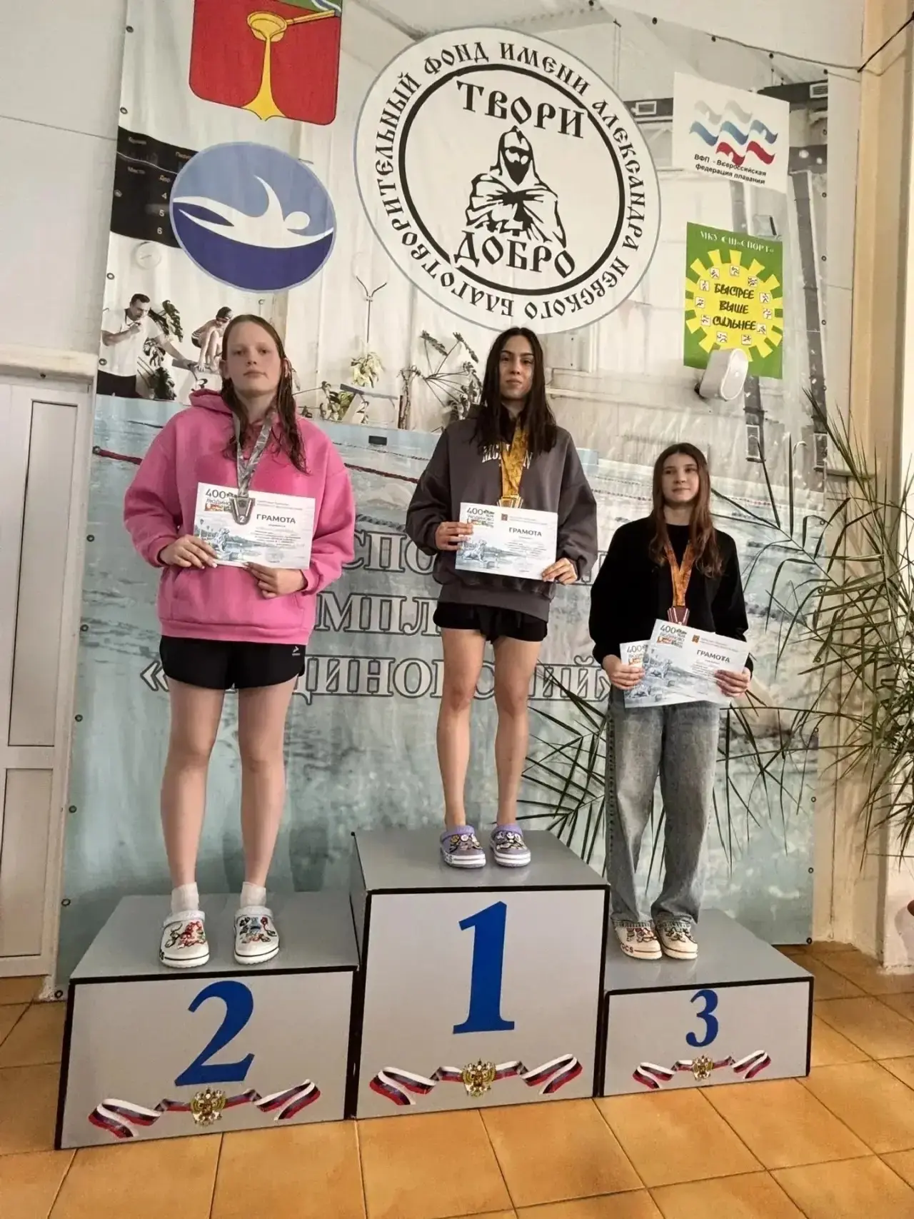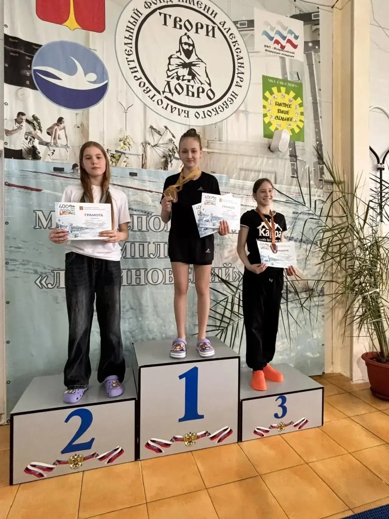 и две медали 1 и 3 места в эстафетном плавании 450 м комбинированная у юношей и девушек.