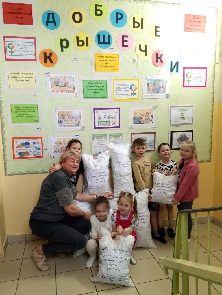 Воспитанники детского сада №4 вместе со своими воспитателями и родителями на протяжении нескольких лет ведут активную волонтерскую деятельность. Вместе они успели сделать много важных и полезных дел. Об этом поведала заведующая детским садом Любишина Т.А. Детский сад продолжает принимать участие во Всероссийском эколого-благотворительном проекте "Добрые крышечки".
