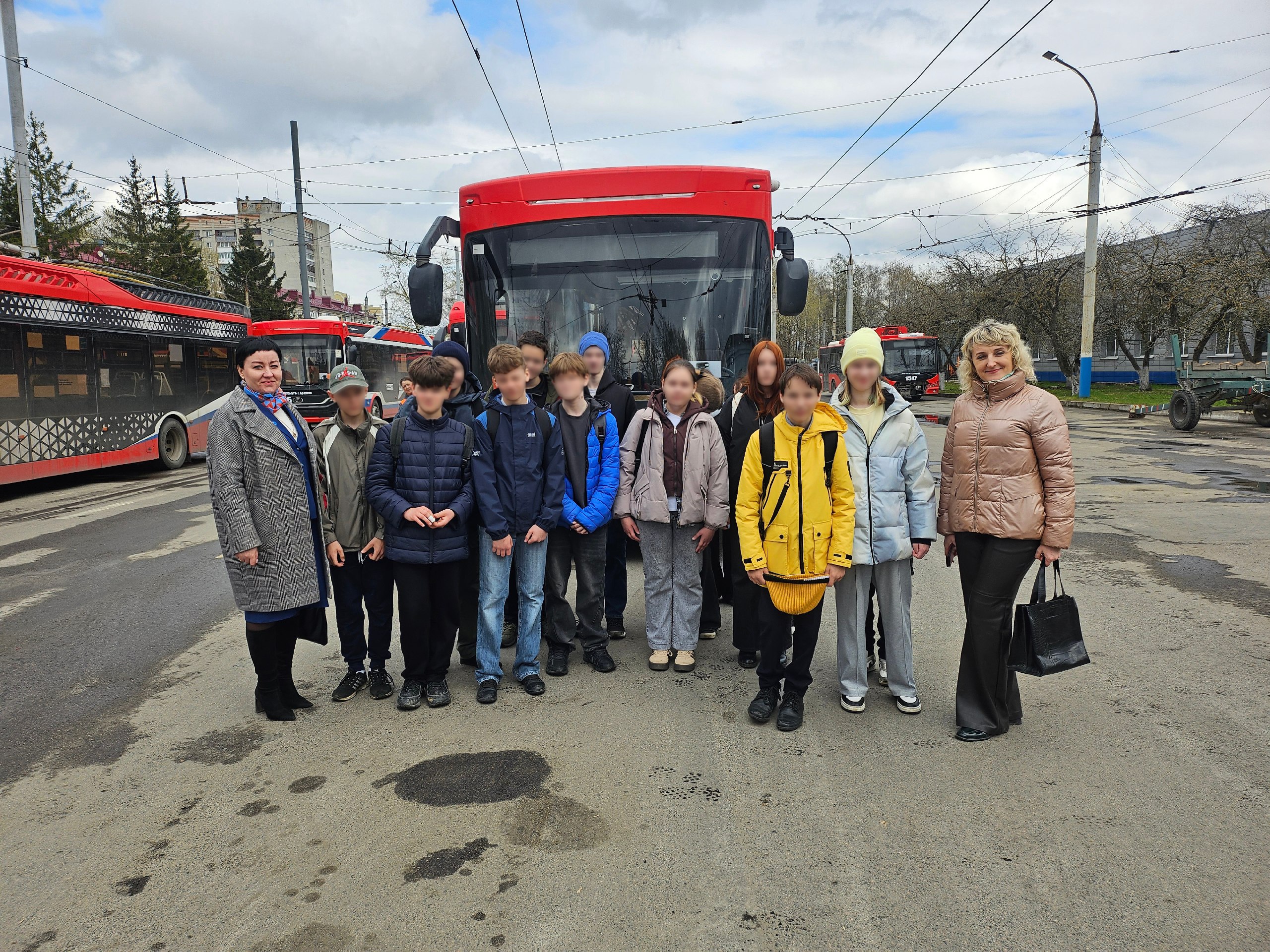 В ходе экскурсии семиклассники познакомились с современными транспортными средствами марки «Адмирал», используемыми для городских пассажирских перевозок. Они посетили территорию депо, учебный центр предприятия и получили уникальную возможность посидеть в кабине настоящего троллейбуса.