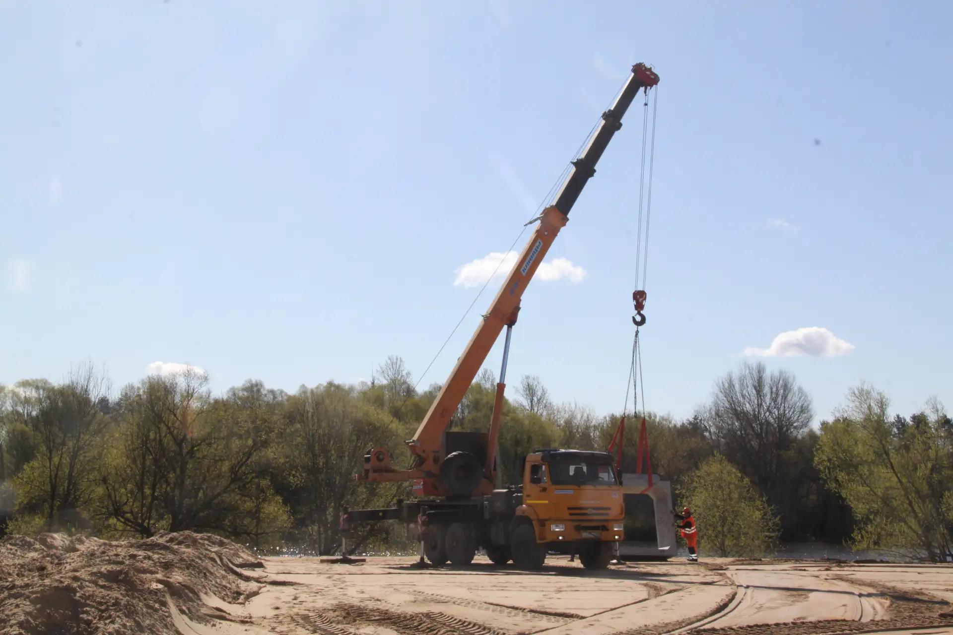 Первый этап строительства начался в прошлом году. Проведена большая работа по подготовке основания, расчистке от древесной растительности и кустарников, выполнены работы по устройству насыпи из песка, частично подготовлено свайное поле.