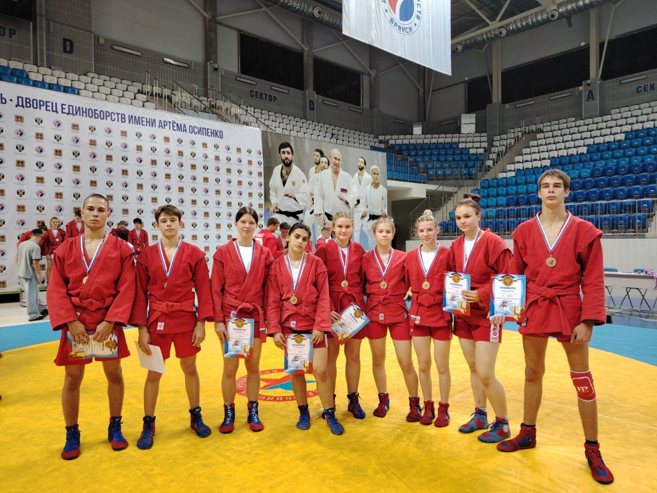26 сентября во Дворце единоборств имени Артёма Осипенко прошло Первенство Брянской области по самбо среди юношей и девушек 2008-2010 годов рождения. В соревнованиях приняли участие более 120 спортсменов из разных спортивных школ региона, которые продемонстрировали высокий уровень мастерства и спортивный дух.