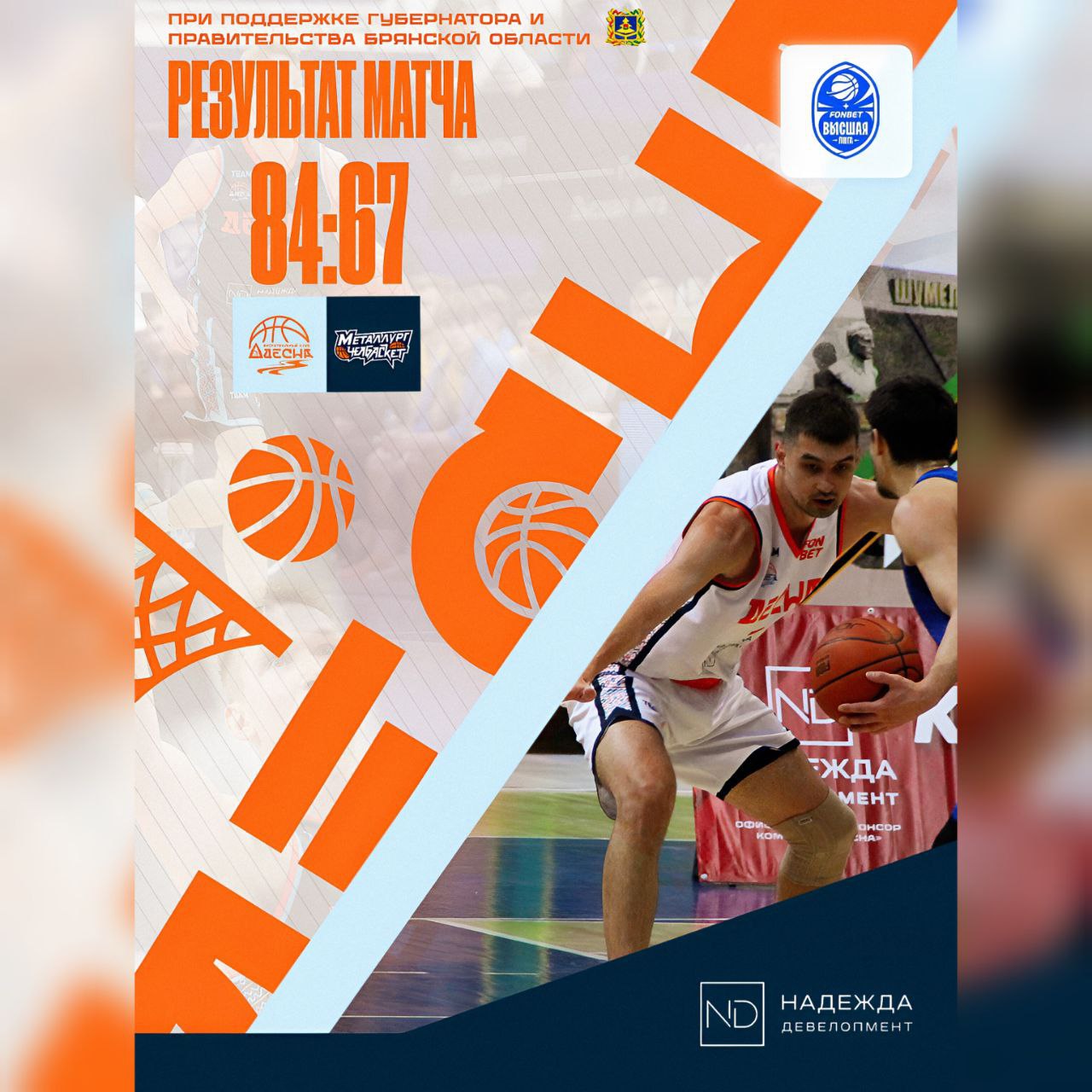Баскетбольный клуб «Десна» одержал победу над БК «Металлург-Челбаскет» в первом матче! Брянцы выиграли у гостей из Магнитогорска со счетом 84:67 (28:13, 16:22, 24:11, 16:21).