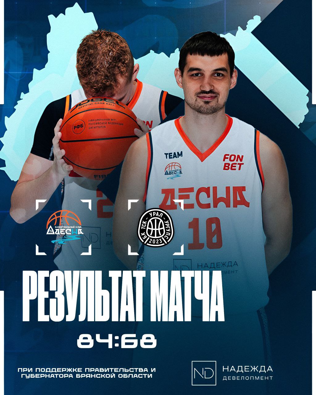 Брянская «Десна» одержала победу над лидером турнирной таблицы - командой «ТСКУРАЛУРГУПС» (Екатеринбург) со счётом 84:68.