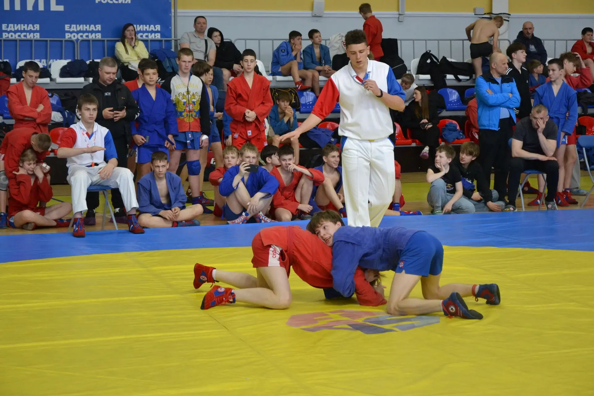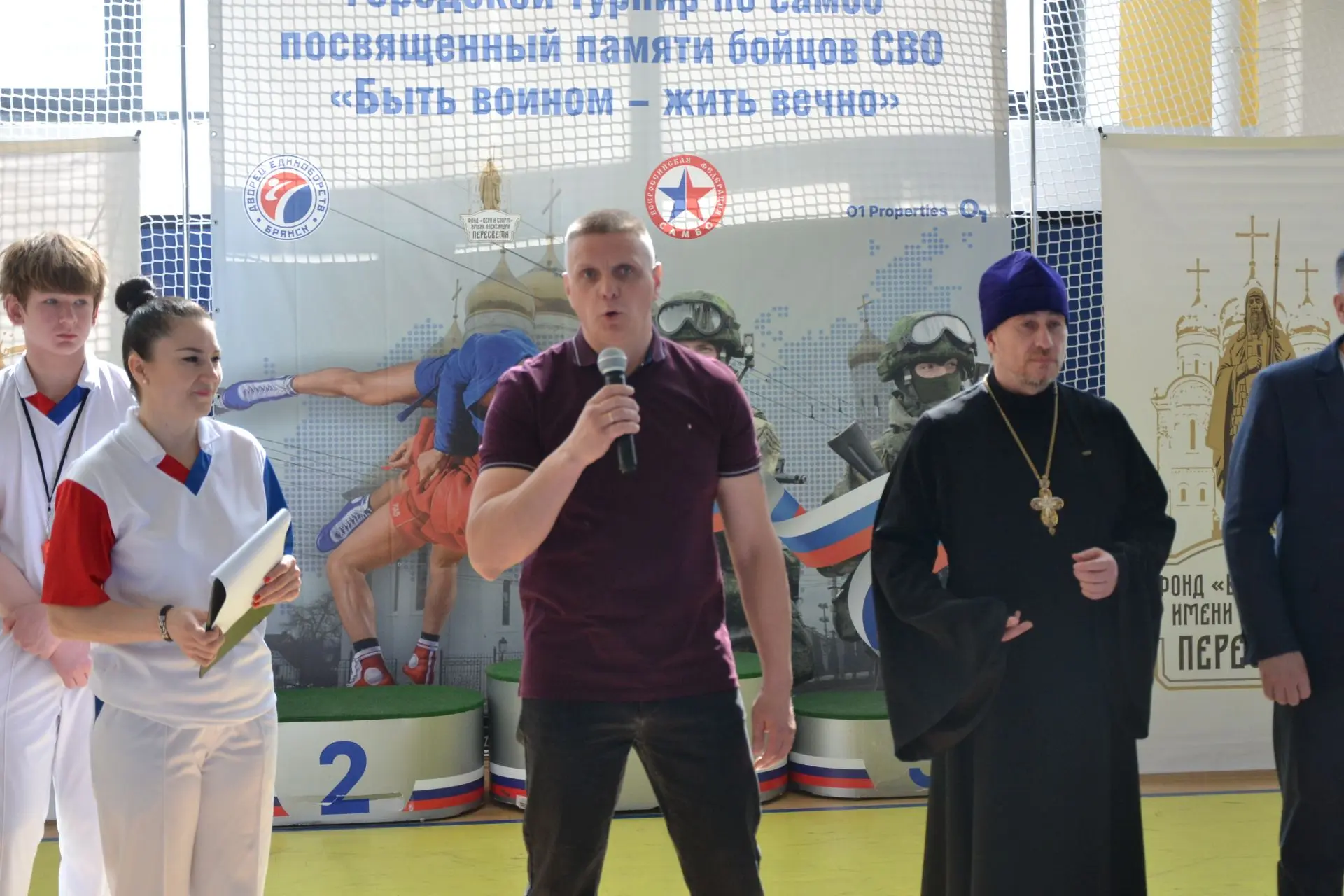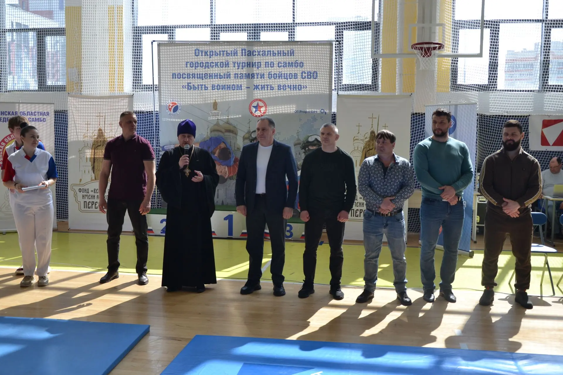 18 апреля 2026 года в Брянске, во Дворце единоборств им. Артема Осипенко, проходит открытый Пасхальный городской турнир по самбо. Посвятили мероприятие памяти павших бойцов СВО. В турнире участвуют более 120 борцов в возрасте от 13 до 15 лет. Ребята получили напутствие от почетных гостей спортивного праздника и уверенно вступили в борьбу за медали турнира!