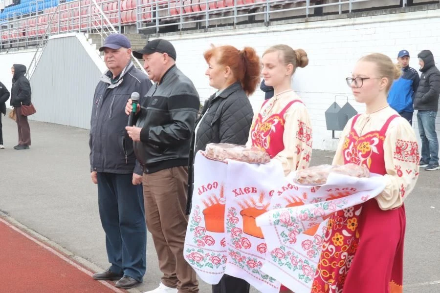 Честь поднять государственный флаг была предоставлена капитанам команд. Девушки-волонтеры, активистки «Движения первых» Трубчевского района по доброй традиции преподнесли капитанам команд пышные караваи.