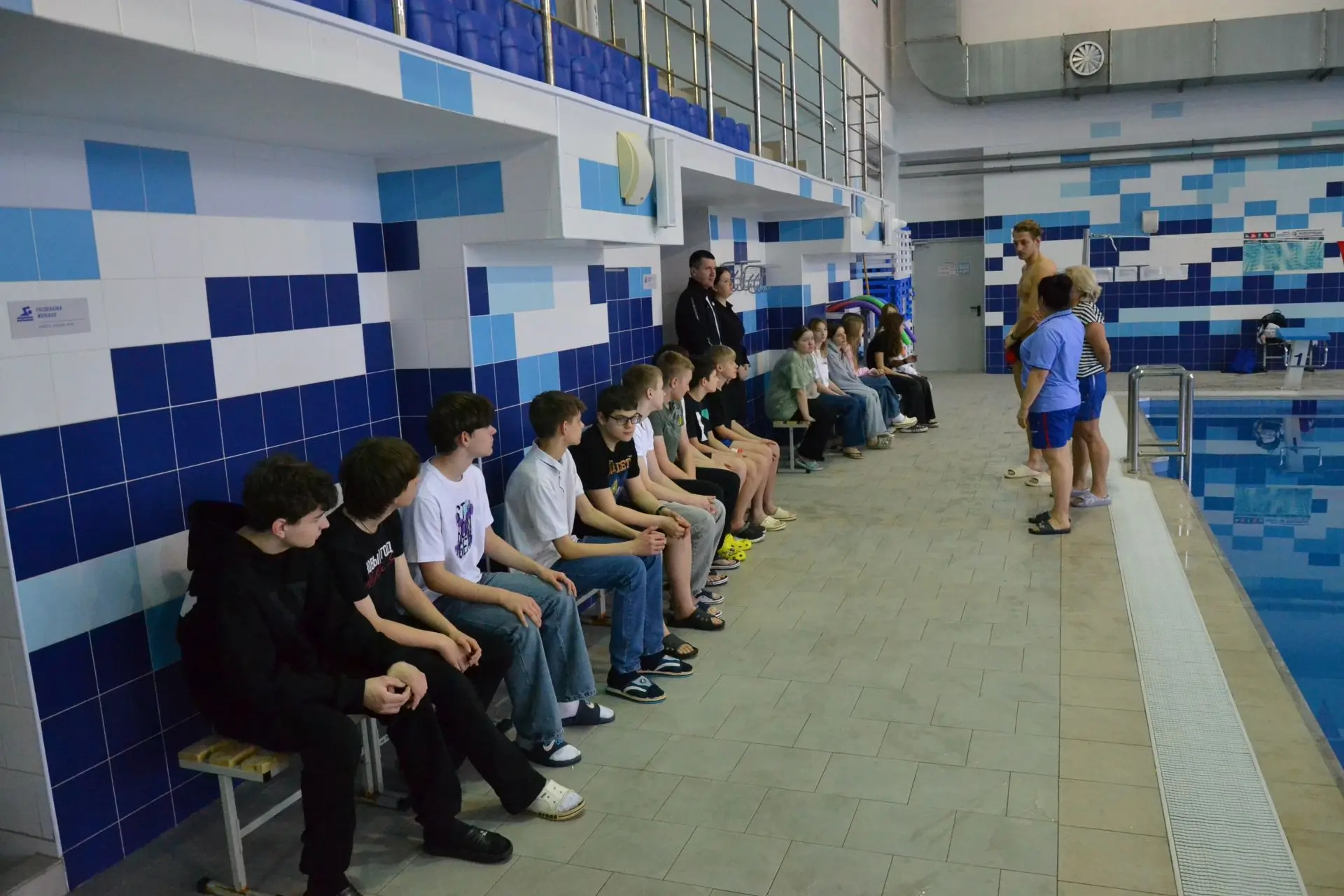 Затем ребята отправились на плавательные дорожки, чтобы закрепить навыки на практике. Занятие вела Светлана Александровна Новикова. Она напомнила правила поведения на воде и помогла лицеистам освоиться в бассейне. Дети остались очень довольны.