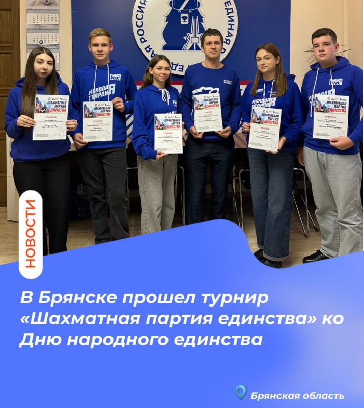 На базе Штаба общественной поддержки при содействии Региональной общественной приёмной Председателя партии «Единая Россия» Д.А. Медведева в Брянской области «Молодая Гвардия Единой России» провела турнир «Шахматная партия единства».Мероприятие...